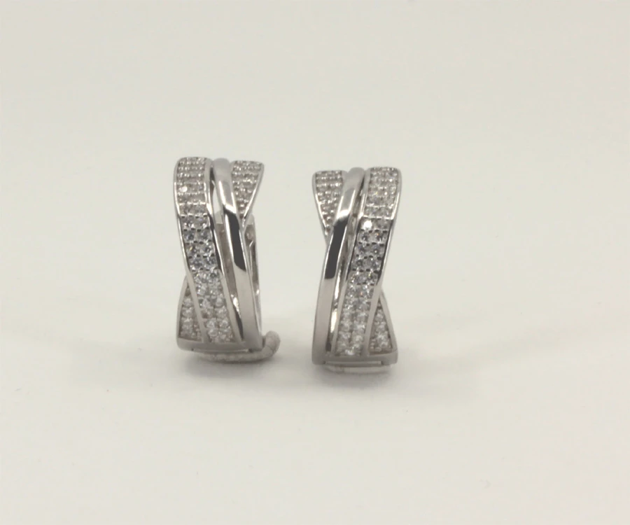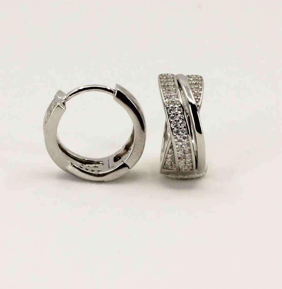 Strieborné náušnice krúžky so zirkónmi. Náušnice sú vyrobené z kvalitného striebra rýdzosti 925/1000 a osadené sú prvotriednymi zirkónmi. Povrch náušníc je porhodiovaný. Úprava rhodiovaním dodáva náušniciam jasnú farbu s leskom a zamedzuje prirodzenej oxidácii striebra. Vonkajší priemer priemer náušníc 16mm, šírka 7mm. Náušnicové zapínanie je kĺbové.
