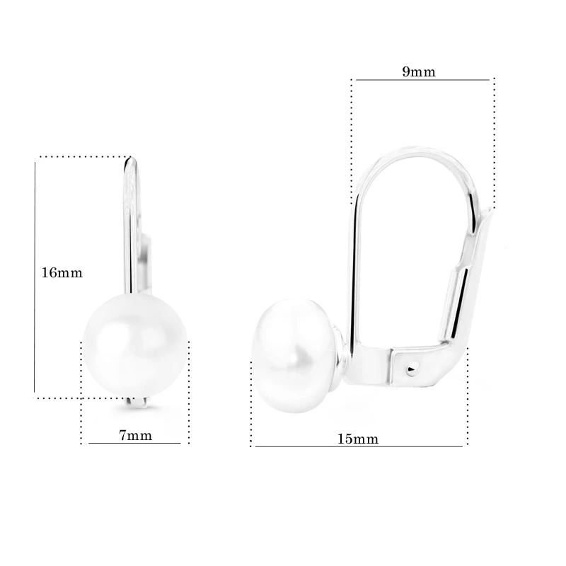 Visiace zlaté náušnice z bieleho zlata rýdzosti 585/1000. Osadené riečne perly sú v kvalite AAA. Perly tejto najvyššej kvality majú lesklý povrch bez akýchkoľvek vád a majú dokonale okrúhly tvar. Náušnicové zapínanie je na klapku. Rozmery náušníc 15x16mm a priemer použitých perál 7mm nájdete zobrazené na podpornej fotografii.