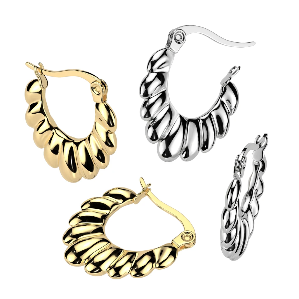 Oceľové náušnice pre ženy a dievčatá. Povrch náušníc je leštený. Náušnicové zapínanie je na francúzsky zámok. Vonkajšie rozmery náušníc 21x19mm nájdete vyobrazené na podpornej fotografii. Uvedená cena platí za pár.
