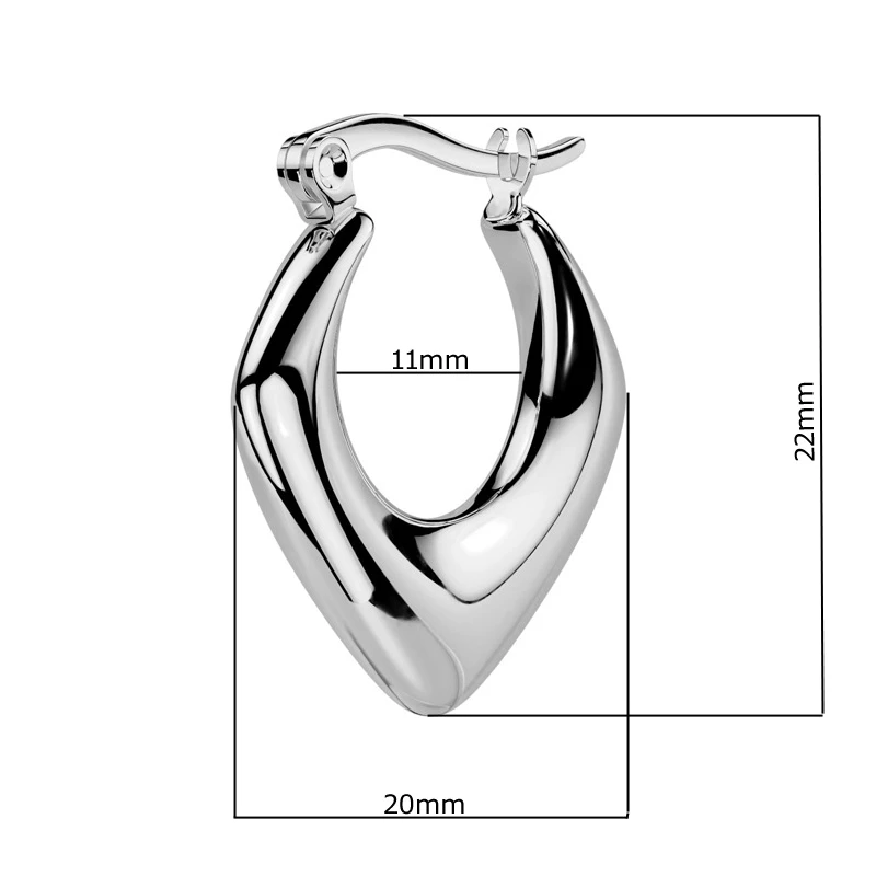 Oceľové náušnice pre ženy a dievčatá. Povrch náušníc je leštený. Náušnicové zapínanie je na francúzsky zámok. Vonkajšie rozmery náušníc 22x20mm nájdete vyobrazené na podpornej fotografii. Uvedená cena platí za pár.