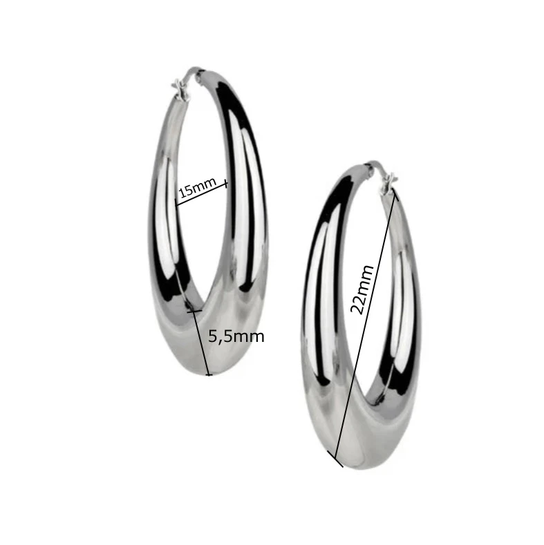 Kruhové náušnice z chirurgickej ocele. Povrch náušníc je leštený. Náušnice majú vonkajší priemer 22mm. Všetky rozmery náušníc nájdete na podpornej fotografii. Zapínanie náušníc je na francúzsky zámok. Cena je uvedená za pár.