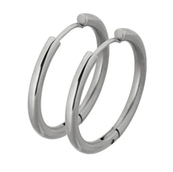 Kruhové náušnice z chirurgickej ocele. Povrch náušníc je leštený. Vnútorný priemer náušníc 16mm, vonkajší priemer 21mm. Hrúbka 2,5mm. Náušnicové zapínanie je kĺbové. Uvedená cena platí za pár.