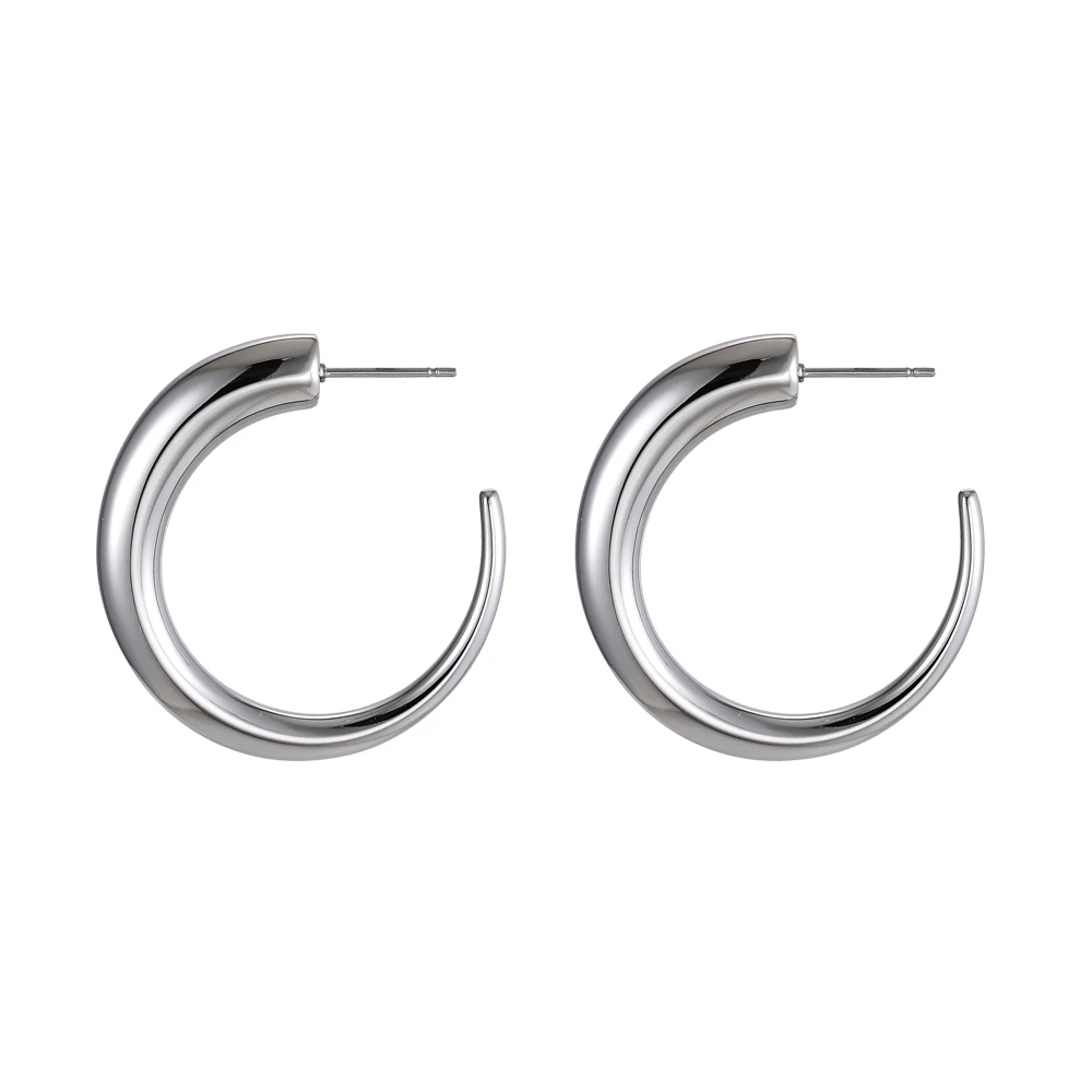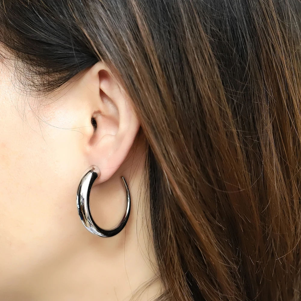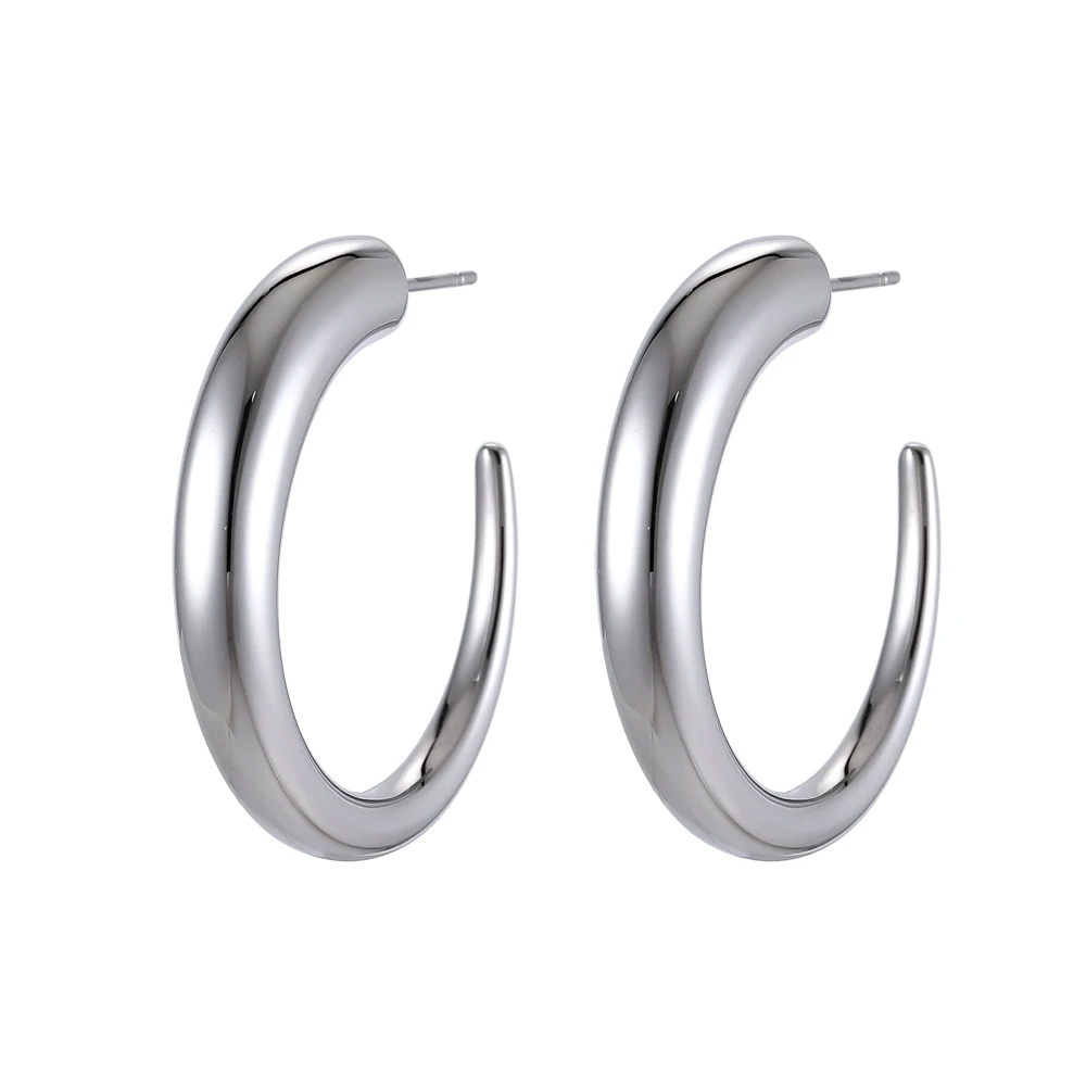 Masívne kruhové náušnice z chirurgickej ocele. Náušnice sú "duté" a aj napriek ich rozmerom sa pohodlne nosia. Vonkajší priemer náušníc 35mm, náušnice je v najširšom bode pri uchu široká 7mm a postupne sa zužuje na 2,5mm. Náušnicové zapínanie je na puzety.