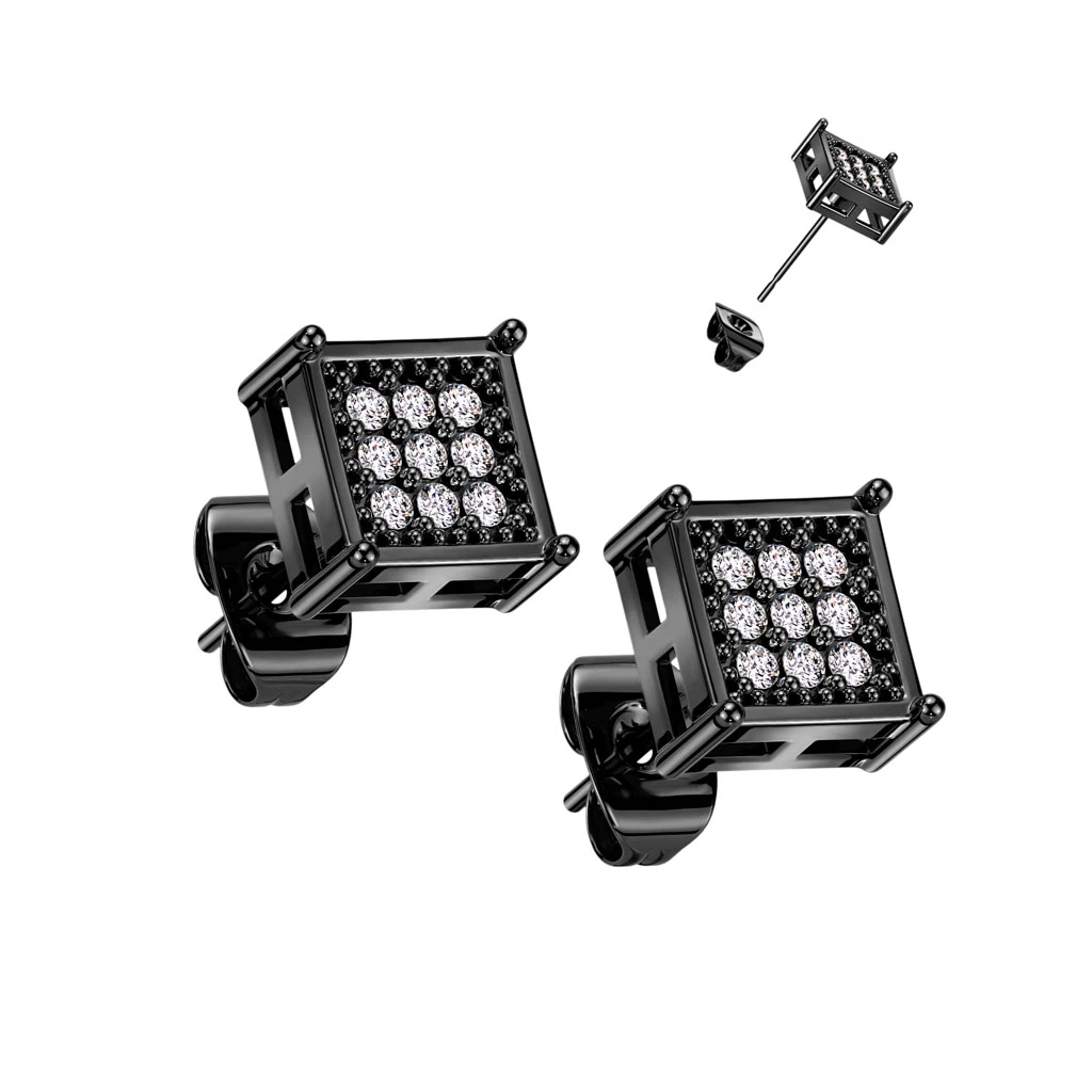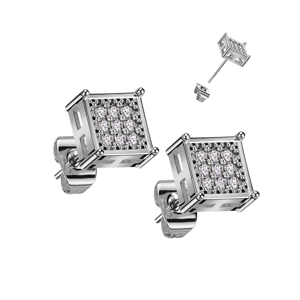 Oceľové náušnice kôstky so zirkónmi. Povrch náušníc je leštený. Náušnicové zapínanie je na puzety. Štvorcové náušnice kôstky veľkosti 8x8mm.