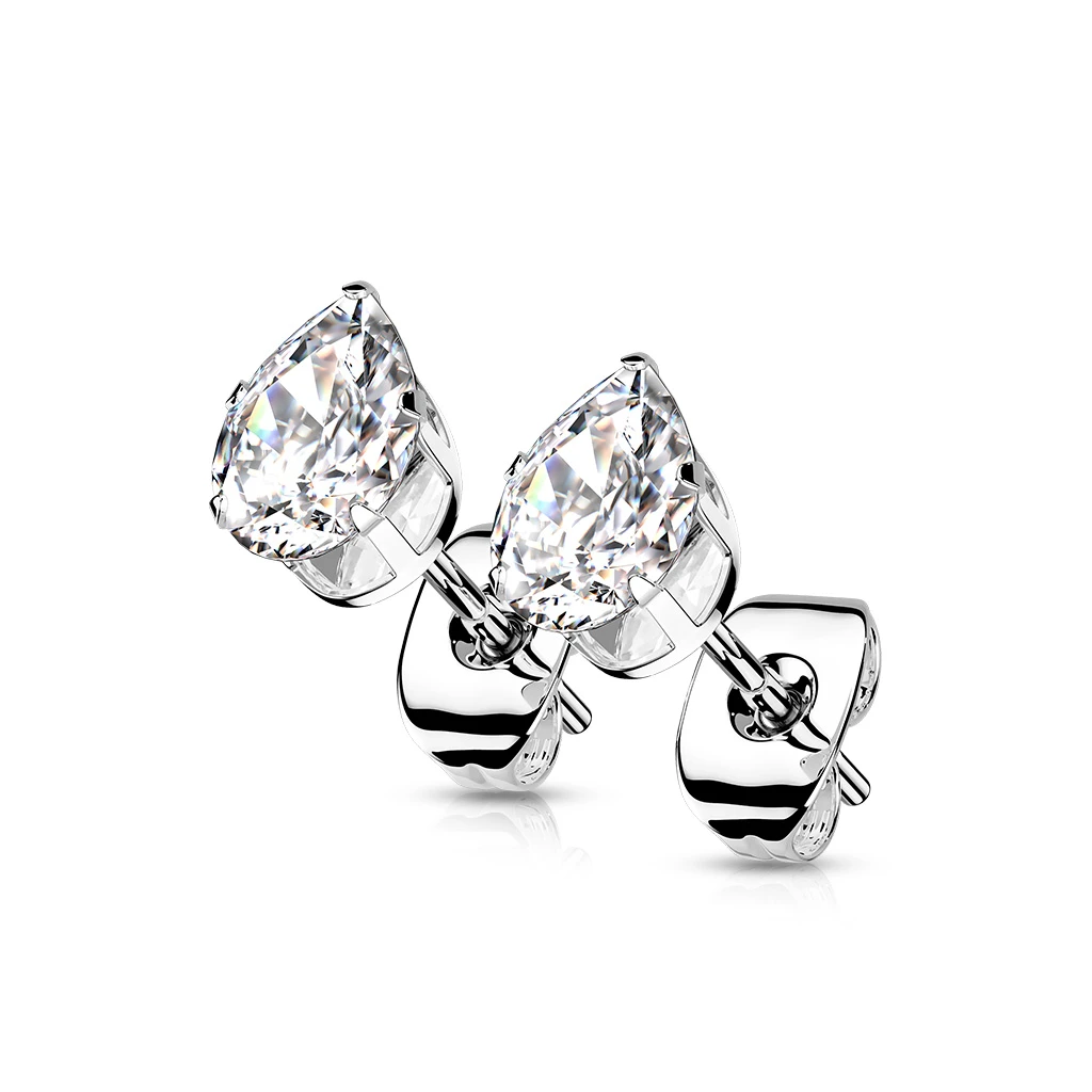 Náušnice kôstky z chirurgickej ocele so zirkónom v tvare kvapky o rozmere 4x6mm. Náušnicové zapínanie je na puzetky.