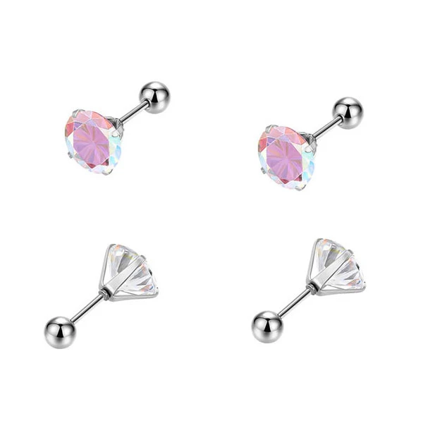 Náušnice z chirurgickej ocele so zapínaním na skrutku, driek má priemer 1,0mm, skrutkovacia gulička má priemer 4mm. Vďaka zapínaniu sa skrutkovacou guľôčkou náušnice netlačia a pohodlne sa nosia. Priemer duhového zirkónu 3mm. Uvedená cena platí za pár.