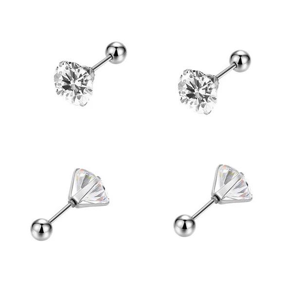 Náušnice z chirurgickej ocele so zapínaním na skrutku, driek má priemer 1,0mm, skrutkovacia gulička má priemer 4mm. Vďaka zapínaniu sa skrutkovacou guľôčkou náušnice netlačia a pohodlne sa nosia. Priemer bieleho zirkónu 3mm. Uvedená cena platí za pár.