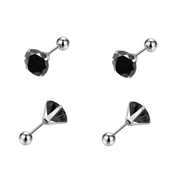Náušnice z chirurgickej ocele so zapínaním na skrutku, driek má priemer 1,0mm, skrutkovacia gulička má priemer 4mm. Vďaka zapínaniu sa skrutkovacou guľôčkou náušnice netlačia a pohodlne sa nosia. Priemer čierneho zirkónu 3mm. Uvedená cena platí za pár.