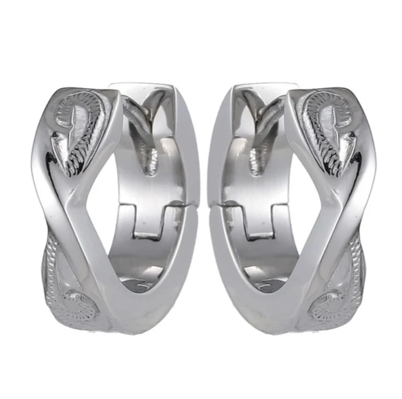 Náušnice krúžky z chirurgickej ocele. Povrch náušnice je leštený s gravírovaním. Náušnicové zapínanie je na kĺb. Vonkajší priemer krúžku 13mm, vnútorný priemer 8mm, šírka náušníc 4mm. Uvedená cena platí za pár.