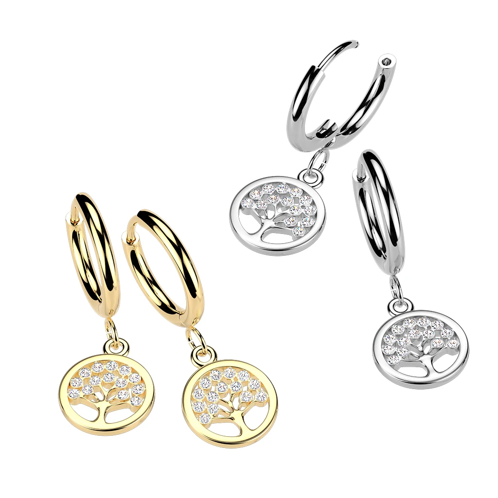 Náušnice z chirurgickej ocele krúžky so stromom života SESE5135