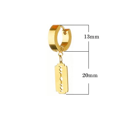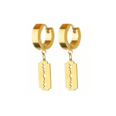 Náušnice krúžky z chirurgickej ocele. Povrch náušnice je leštený. Krúžok je široký 4,0mm, vonkajší priemer krúžku 13mm. Celková dĺžka náušnice s ozdobou žiletky 33mm. Uvedená cena platí za pár náušníc.