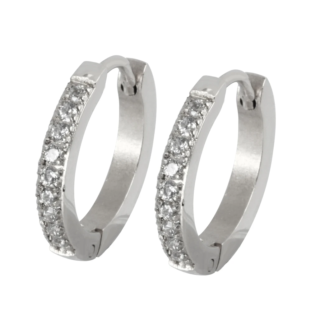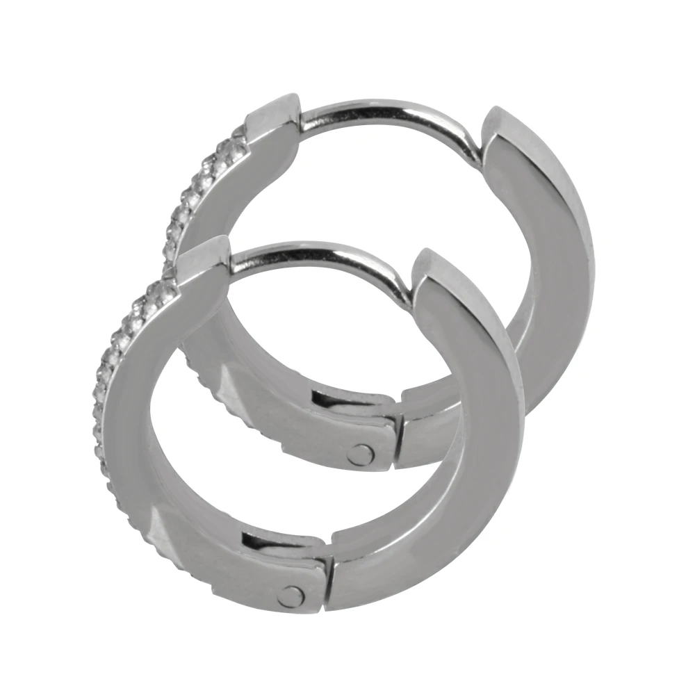 Náušnice väčšie krúžky z chirurgickej ocele. Náušnice sú ozdobené trblietavým zirkónmi. Vonkajší priemer náušníc 15mm, vnútorný priemer 11mm. Šírka náušníc 2mm. Cena je uvedená za pár.