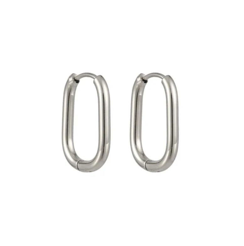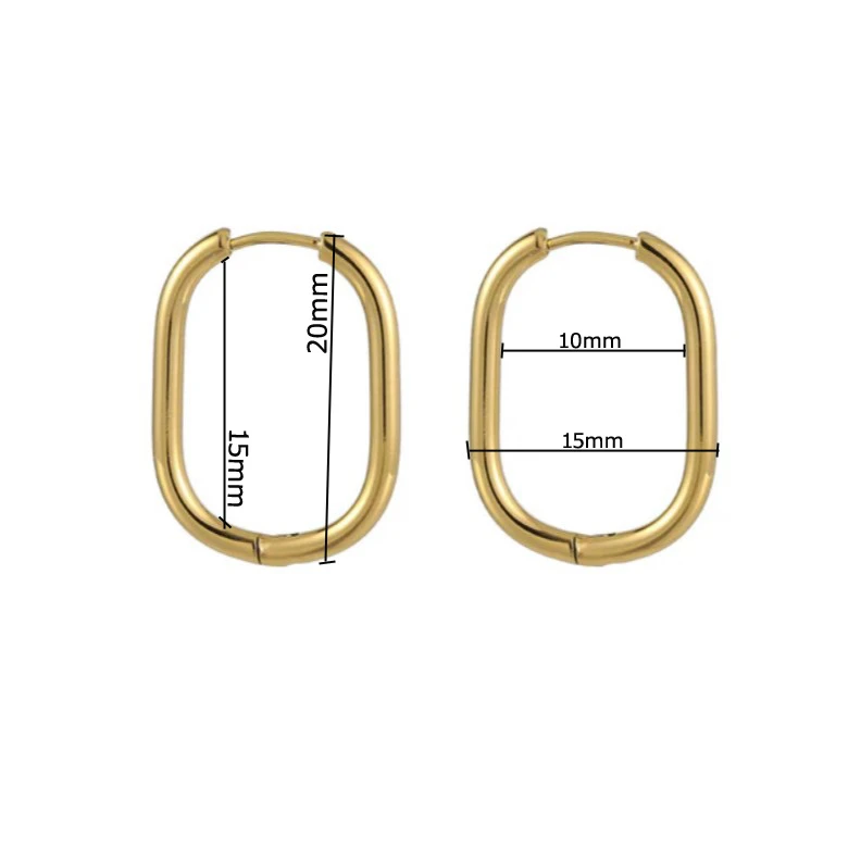 Náušnice z chirurgické oceli visací ve tvaru oválku. Povrch náušnic je leštěný. Náušnice jsou široké 15mm, dlouhé 20mm. Všechny rozměry náušnic najdete na podpůrné fotografii. Zapínání náušnic je kloubové. Cena je uvedena za pár.