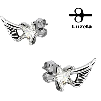 Náušnice z chirurgickej ocele 316L. Náušnice majú leštený povrch kombinovaný s čiernou farbou. Náušnice sú zdobené zirkónmi. Náušnice majú zapínanie na puzety. Rozmer náušníc: 6 * 13mm