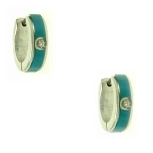 Náušnice vyrobené z chirurgickej ocele. Náušnice majú modro matný povrch ozdobený zirkónom. Vnútorný priemer náušníc 9mm, šírka 4mm.