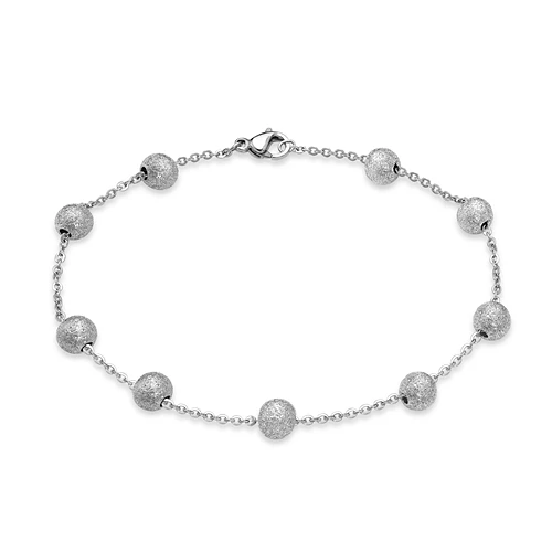 Náramok z chirurgickej ocele 316L. Guličky majú pieskovaný povrch, retiazka je leštený. Priemer guličiek 6mm, šírka retiazky 1,5 mm, celková dĺžka 19cm. Náramok sa zapína pomocou karabíny.