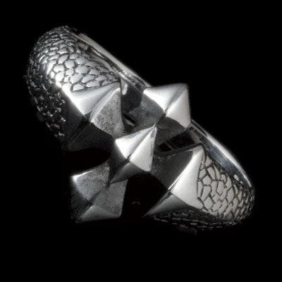 Prsteň z chirurgickej ocele 316L. Prsteň má leštený povrch kombinovaný so vzorom hadej kůže.Ozdoba prsteňa má rozmer 14 * 14mm. Obrúčka prsteňa je široká 3mm. Pekný pánsky oceľový prsteň.