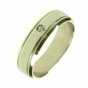 Prsteň vyrobený z chirurgickej ocele. Prsteň má leštené okraje, stred prsteňa je brúsená oceľ. Prsteň je ozdobený zirkónom.