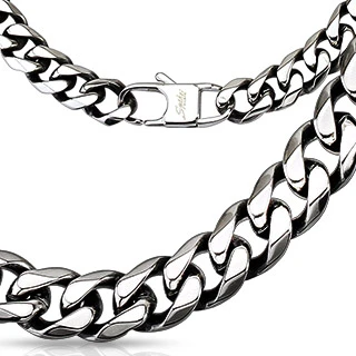 Retiazka z chirurgickej ocele 316L. Povrch retiazky je leštený. Retiazka má „skosené“ hrany. Dĺžka retiazky 60cm, šírka 10mm. Zapínanie retiazky je karabínové. Pekná pánska retiazka klasického vzoru. Dĺžku retiazky je možné na prianie zadarmo skrátiť.