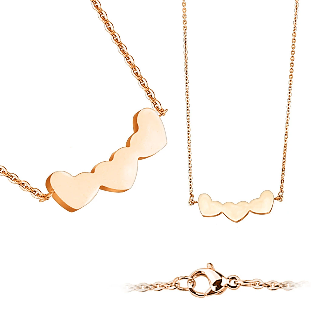 Dámsky náhrdelník z chirurgickej ocele. Náhrdelník s ozdobou srdiečok. Dĺžku náhrdelníka možno upraviť v rozmedzí 50–55cm. Očka na retiazku majú rozmer 2,5 × 2mm. Rozmer ozdobných srdiečok 24 × 8mm. Zapínanie je na karabínu.