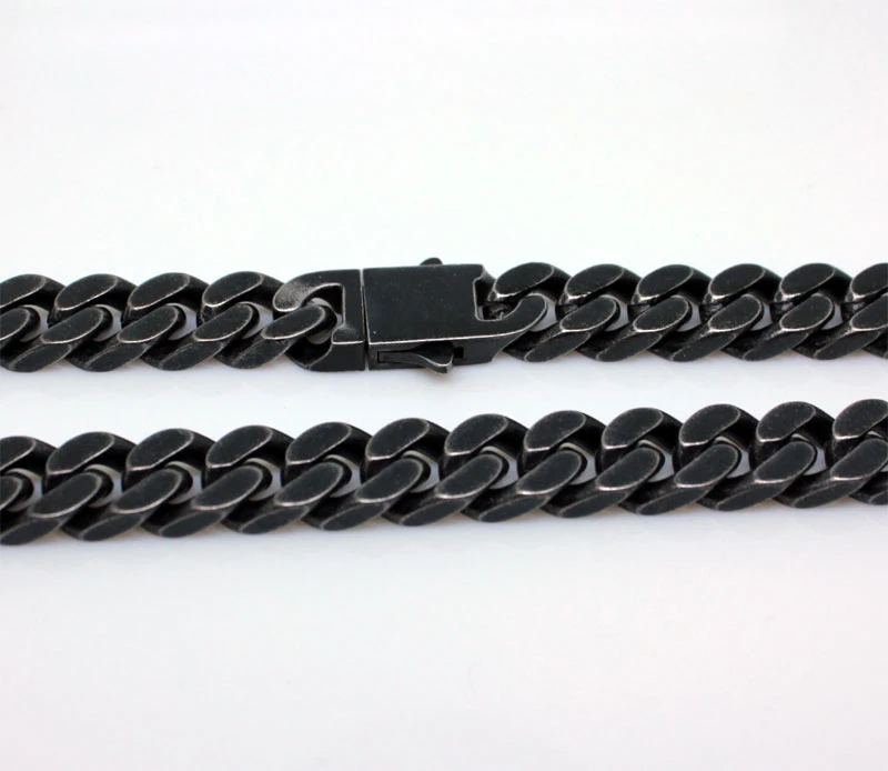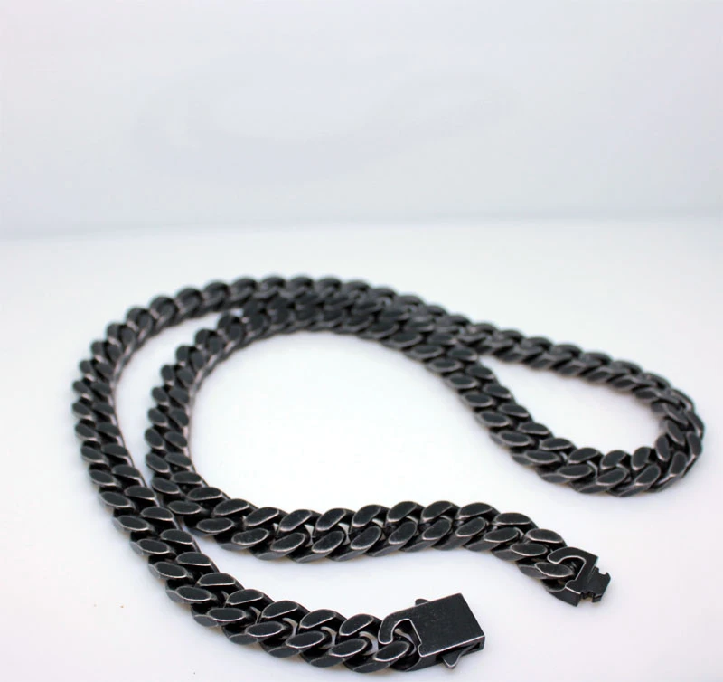 Retiazka z chirurgickej ocele na krk pre mužov. Povrch retiazky je matný vo farbe pištoľovej šedi. Očká retiazky sú široké 9mm, výška očiek 4mm. Zapínanie retiazky je nenápadný klip.