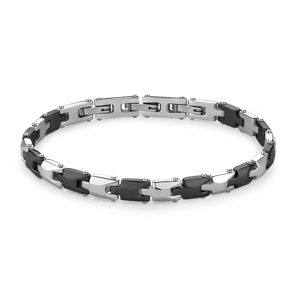 Pánsky náramok z kolekcie Backliner. Náramok je vyrobený z chirurgickej ocele 316l. Povrch náramku je leštený, čierne články sú upravené technológiou PVD. Náramok je dlhý 20,5 cm.
