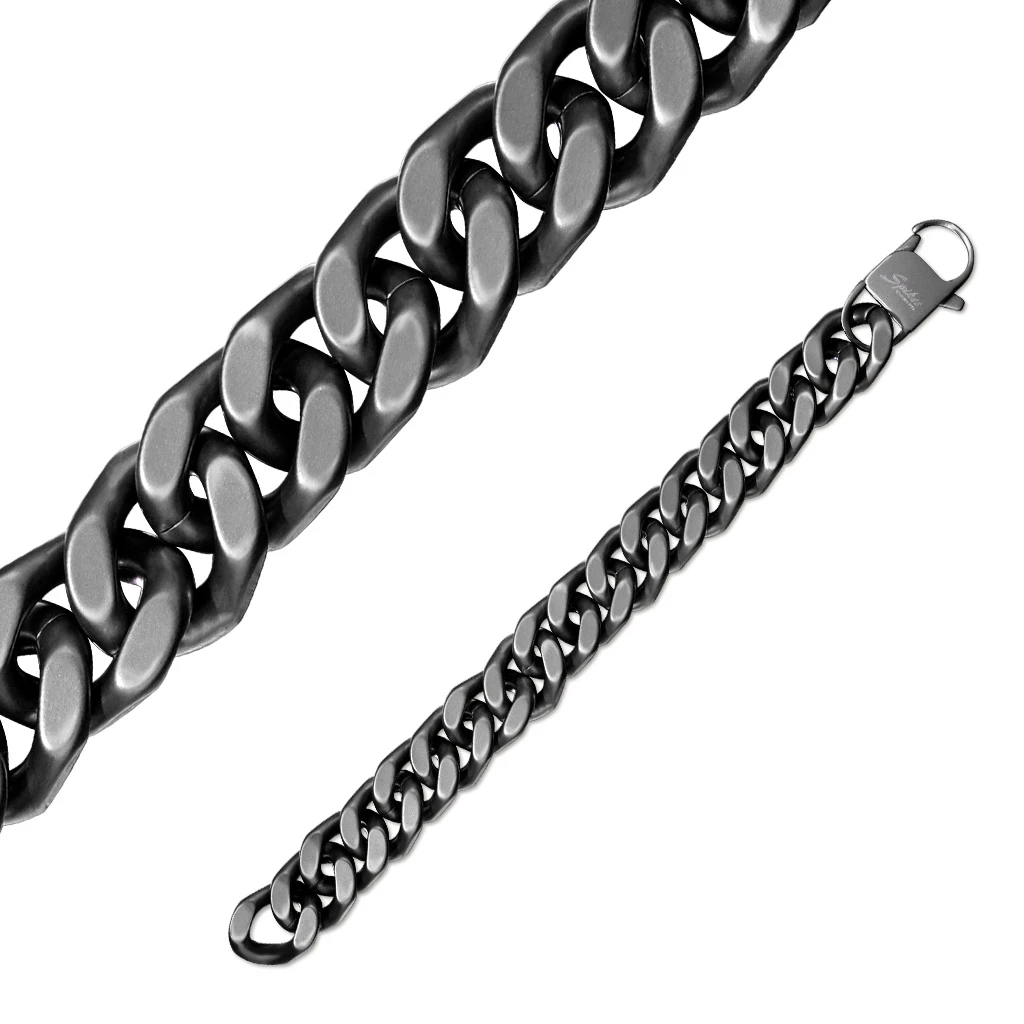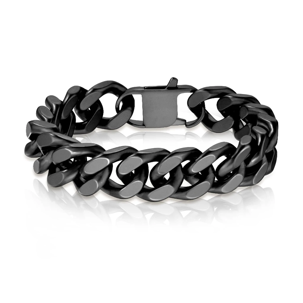 Náramok pre muža z chirurgickej ocele. Matný povrch náramku je technológiou PVD na čiernu. Náramok je široký 16mm. Zapínanie náramku je karabínové.