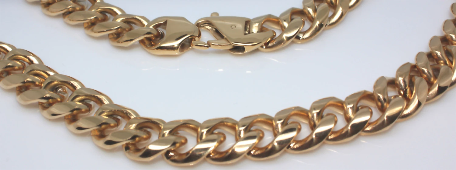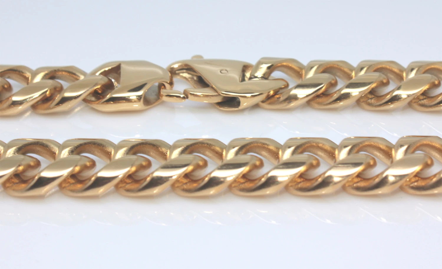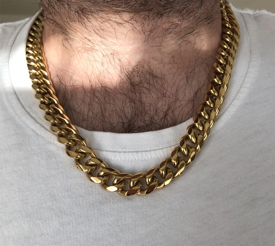 Pánsky pozlátený retiazka z chirurgickej ocele. Povrch retiazky je leštený pozlátený technológiou IP. Zapínanie retiazky je karabínové. Retiazka je široký 13mm. Klasický pánsky retiazka na krk vzor Pancr.
