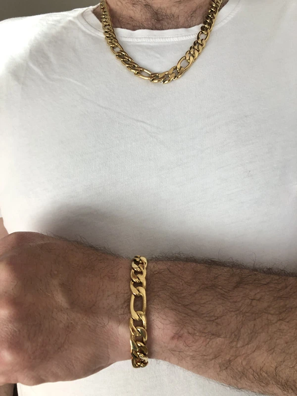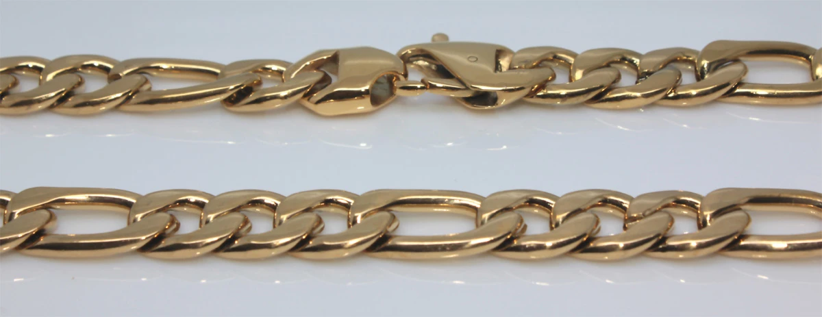 Pánsky pozlátený retiazka z chirurgickej ocele. Povrch retiazky je leštený pozlátený technológiou IP. Zapínanie retiazky je karabínové. Dĺžka retiazky 60cm, šírka 11mm. Klasický pánsky retiazka na krk vzor Figaro.