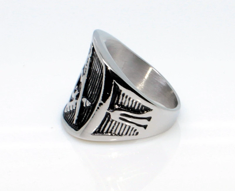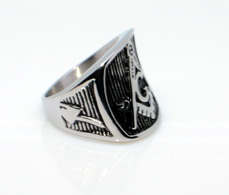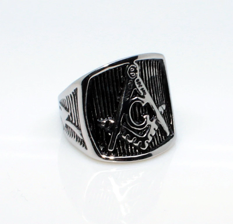 Pánsky prsteň z chirurgickej ocele so slobodomurárskymi znakom. Pečatný prstene z chirurgickej ocele sú veľmi obľúbené pánske šperky najmä pre vlastnosti, aké chirurgická oceľ má. K týmto vlastnostiam patria predovšetkým odolnosť proti poškodeniu, nevyvolávať alergických reakcií, chirurgická oceľ neoxiduje, ani nemení farbu.