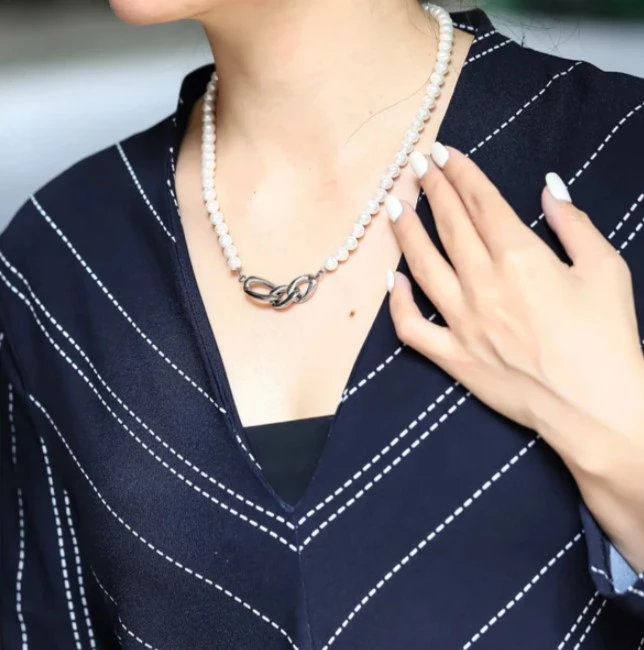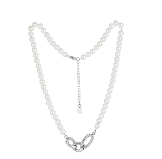 Elegantný náhrdelník spájajúci chladnú chirurgickú oceľ s nadčasovou krásou prírodných perál. Chirurgická oceľ dodáva náhrdelníku moderný a sofistikovaný vzhľad, prírodné perly dávajú náhrdelníku nádych luxusu a romantiky, ktorý obohatí váš každodenný outfit aj špeciálne príležitosti. Tento perlový náhrdelník môže byť aj perfektným darčekom pre Vašich blízkych. Urobte radosť sebe, alebo svojim blízkym ešte dnes a kúpte si náš perlový náhrdelník.