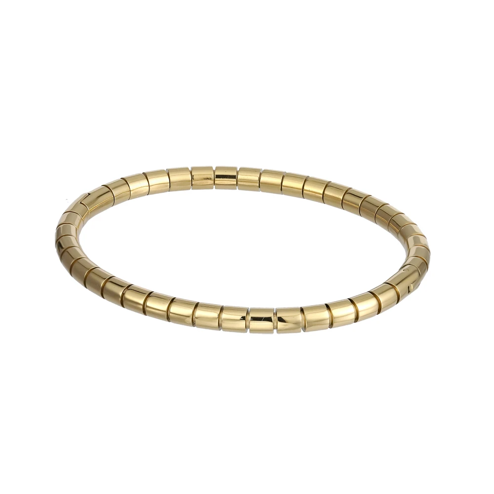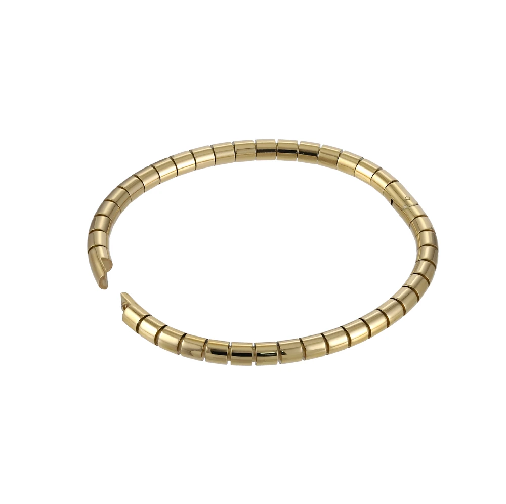 Pevný náramok z chirurgickej ocele. Povrch náramku je leštený. Náramok je široký 5mm, vnútorné rozmery: šírka 60mm, výška 50mm.