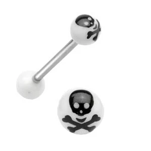 Piercing do jazyka s ozdobou z bioplastov - lebka.