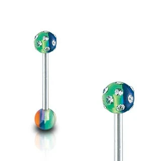 Piercing do jazyka s oceľovým driekom a plastovými guličkami
