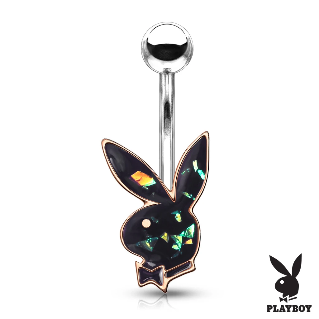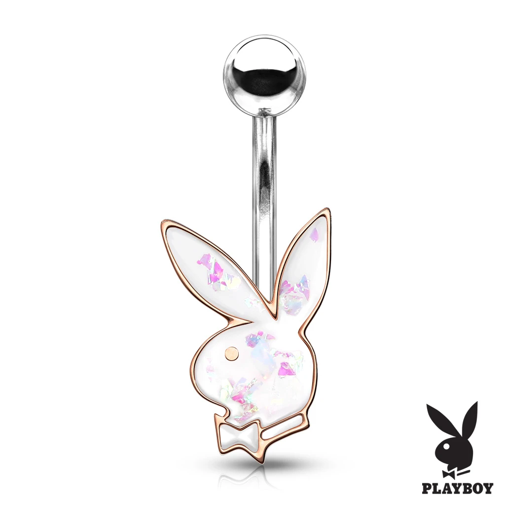 Piercing do brucha s hlavou zajačika Playboy. Hlava zajačika je ozdobená syntetickým lesklým opálom. Driek a guľôčka sú vyrobené z chirurgickej ocele, hlava zajačika Playboy je z porodiované bižutérie. Driek má priemer 1,6 mm, dĺžka drieku 10mm. Priemer guličky 5mm. Hlava zajačika má rozmer 15x10mm.