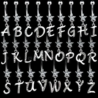 Piercing do pupku. Driek piercingu je z chirurgickej ocele 316L. Ozdoba piercingu je porodiovaný všeobecný kov. Piercing je ozdobený zirkónmi. Rozmery drieku 1,6 * 10 * 5 * 8mm, ozdobné písmeno 11 * 6mm.