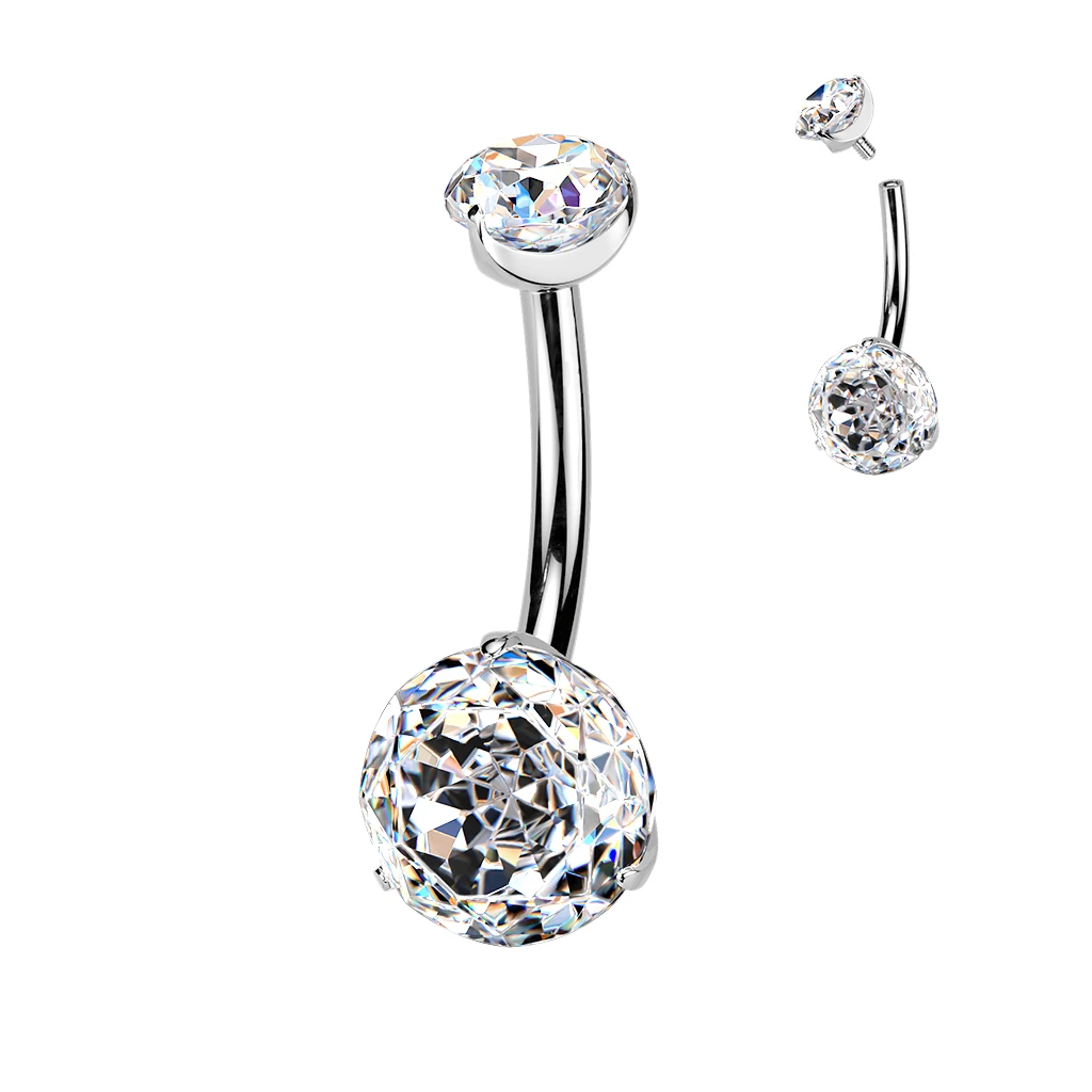 Piercing do brucha vyrobený titánu ASTM F136, ktorý sa bežne používa pri výrobe telových implantátov. Piercing je ozdobený žiarivými zirkónmi. Driek piercingu je dlhý 10 mm, priemer drieku 1,6 mm. Vrchná skrutkovacia ozdoba so zirkónom má priemer 5 mm, spodná ozdoba má priemer 8 mm.