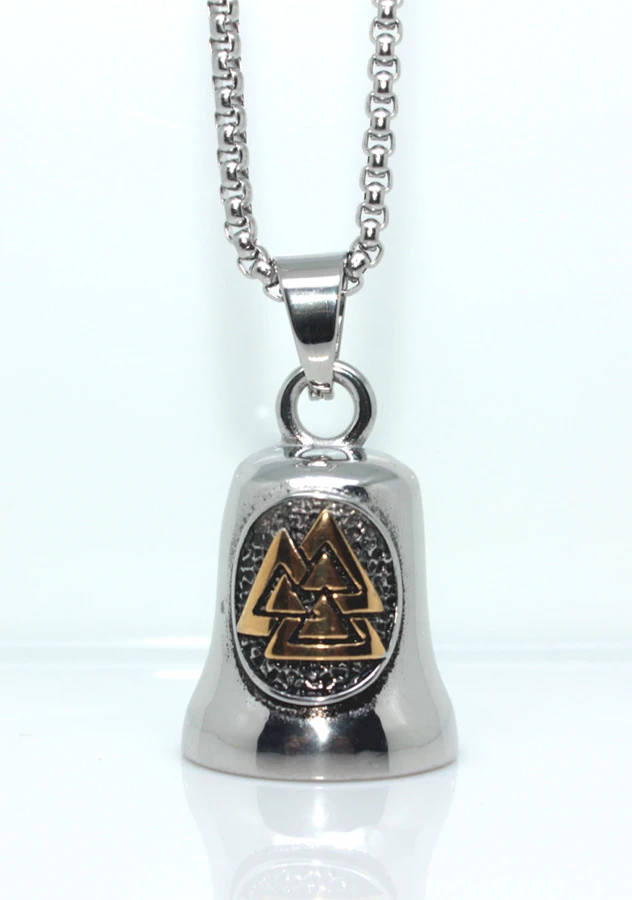 Prívesok pre motorkárov zvonček pre šťastie s plastikou vikingského symbolu bojovníka . K prívesku patrí oceľová retiazka s priemerom 3mm, dlhá 60cm. Rozmer zvončeka 22x34mm.