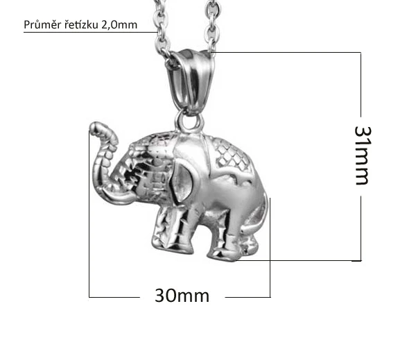 Prívesok z chirurgickej ocele slon a jemná retiazka vzor anker z chirurgickej ocele. Rozmer prívesku 30x31mm, oceľový retiazka s priemerom 2,0mm je dlhý 60cm.