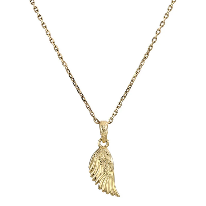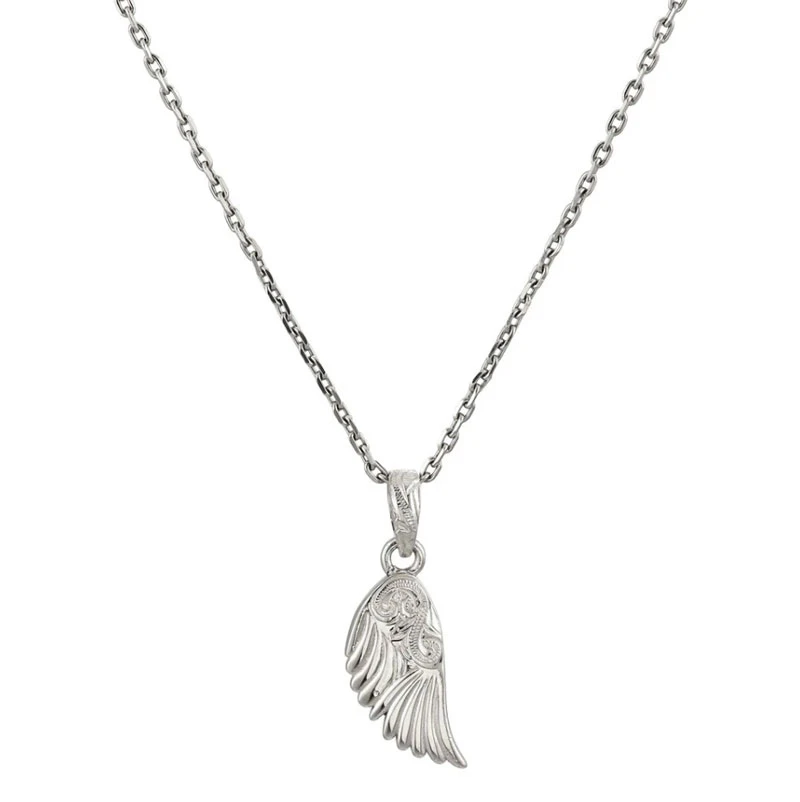Prívesok na retiazku z chirurgickej ocele anjelské krídlo. Pohľadová strana prívesku je zdobená rytinou, zadná strana je leštená. Prívesok je vrátane závesného očka dlhý 27mm, šírka prívesku 9mm. K prívesku patrí retiazka z chirurgickej ocele dlhá 50cm. Dĺžku retiazky je možné na prianie zadarmo skrátiť.