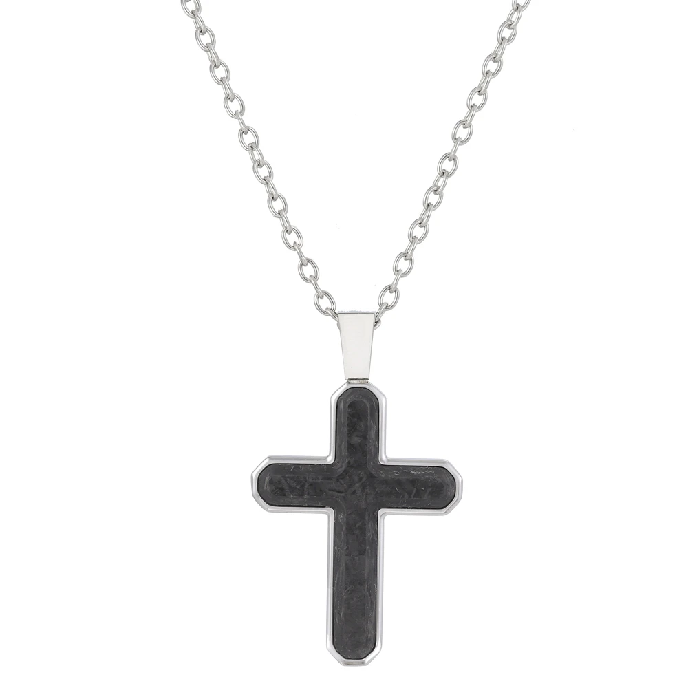 Prívesok z chirurgickej ocele krížik s kovaným uhlíkom + retiazka PSS1176