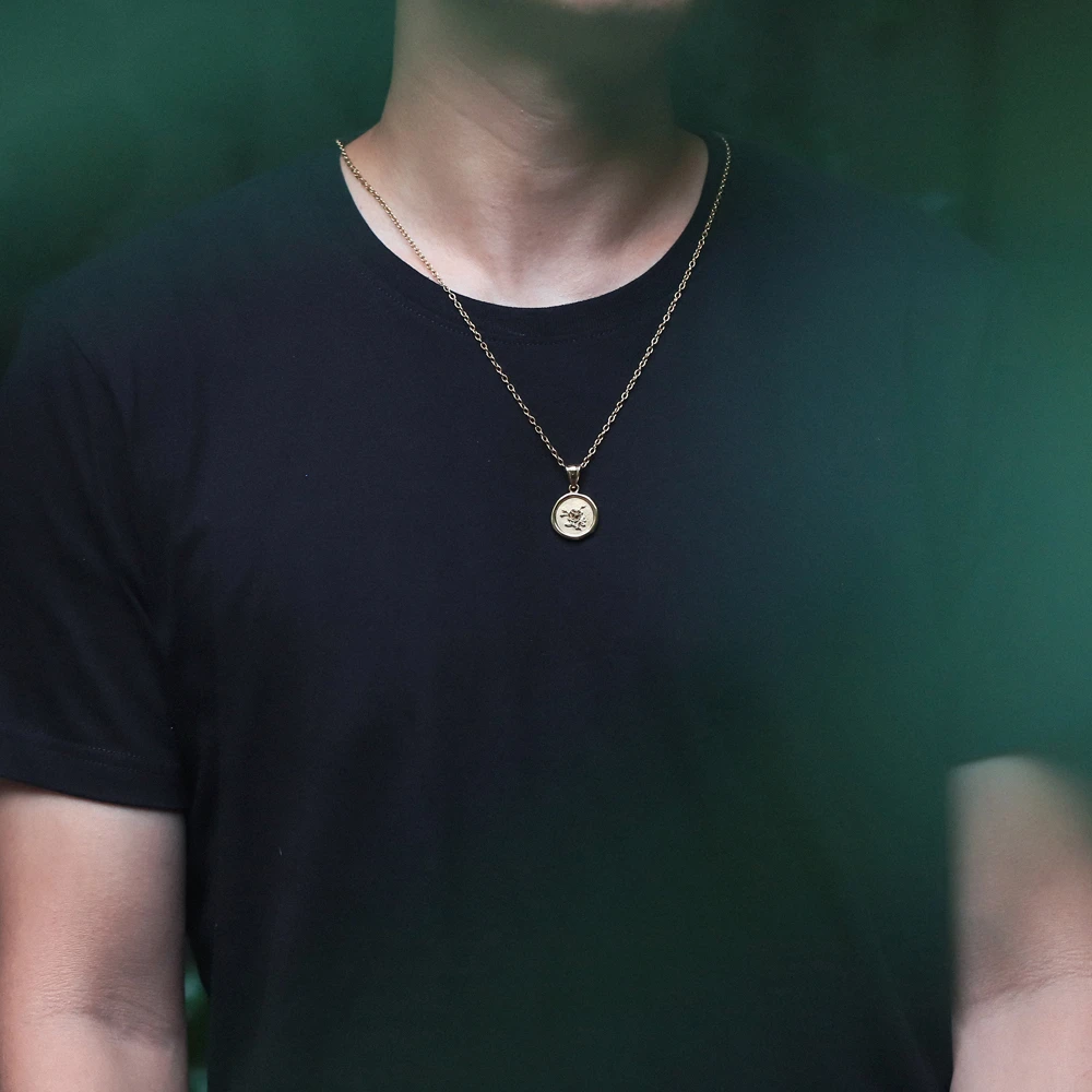Prívesok a retiazka z chirurgickej ocele spojené v náhrdelník. Náhrdelník je vyrobený s citom pre detail a vďaka použitej chirurgickej oceli je odolný a farebne stály. Náhrdelník môžu obáv nosiť aj osoby s citlivou pokožkou, pretože šperky z chirurgickej ocele nevyvolávajú alergické reakcie.