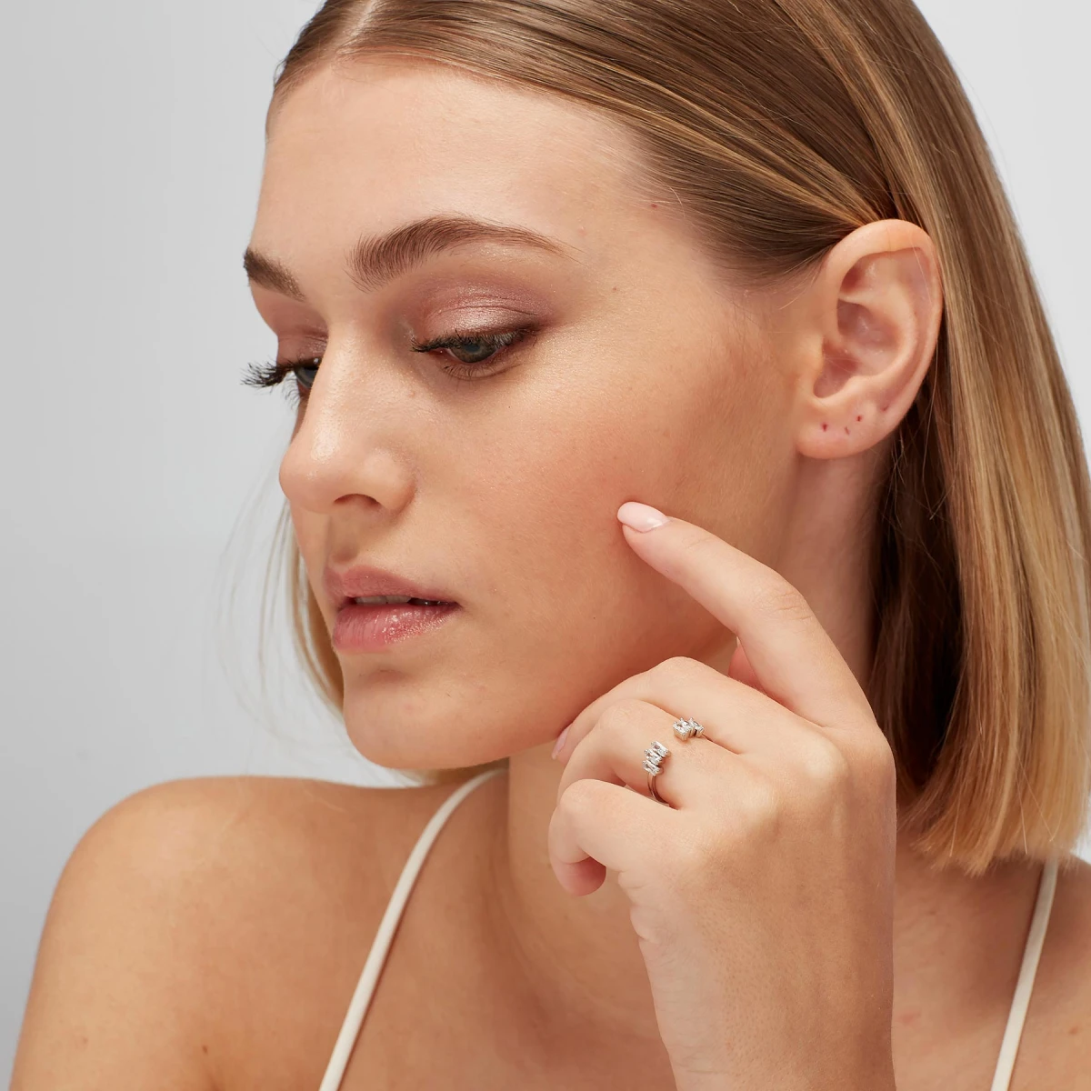 Prsteň zo striebra rýdzosti 925/1000. Povrch prsteňa je porhodiovaný. Úprava prsteňa rhodiovaním mu dodáva jasnú farbu s leskom a zaisťuje jeho dlhodobý bezchybný vzhľad. Prstienok je ozdobený prvotriednymi zirkónmi.