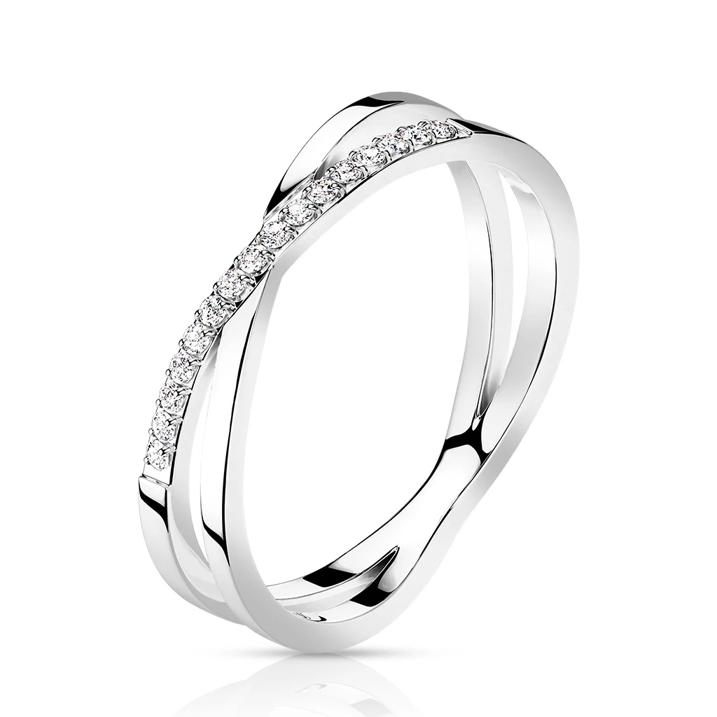 Jemný oceľový prstienok so zirkónmi. Povrch prsteňa je leštený. Prstienok je široký 4,2 mm.