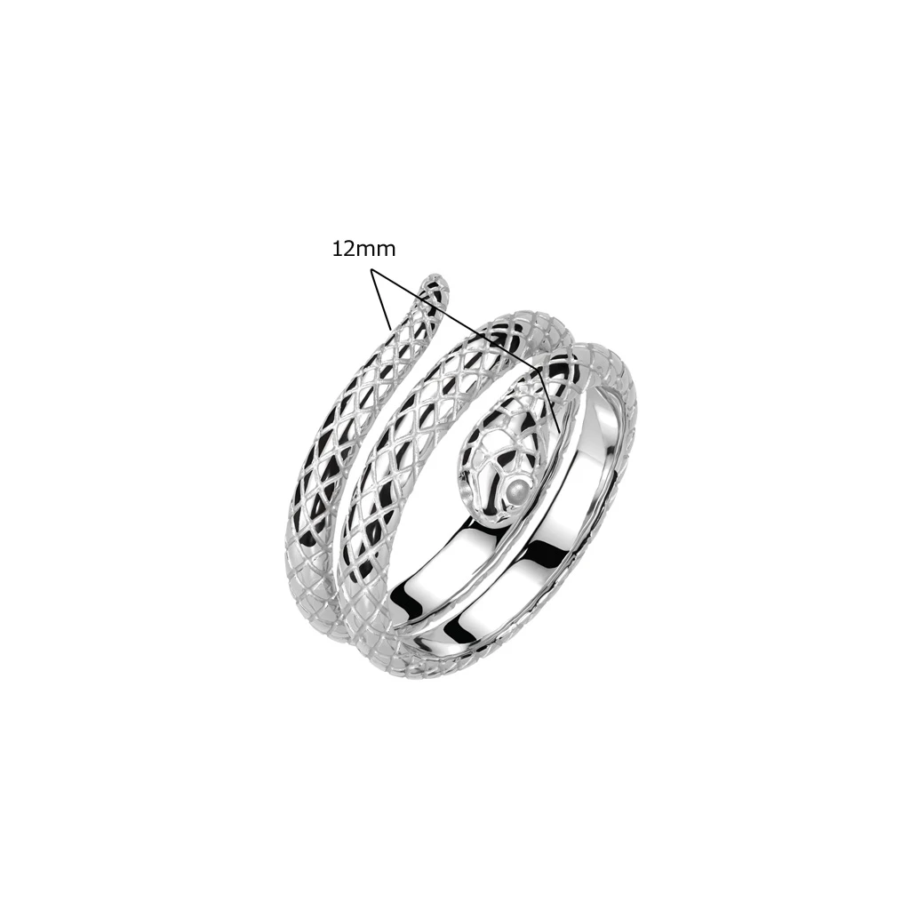 Prsteň z chirurgickej ocele had, ktorý obtočí váš prst. Povrch prsteňa je leštený s plastickým vzorom hadej kože. Had je symbolom transformácie, múdrosti a znovuzrodenia. Prsteň je široký 12mm.