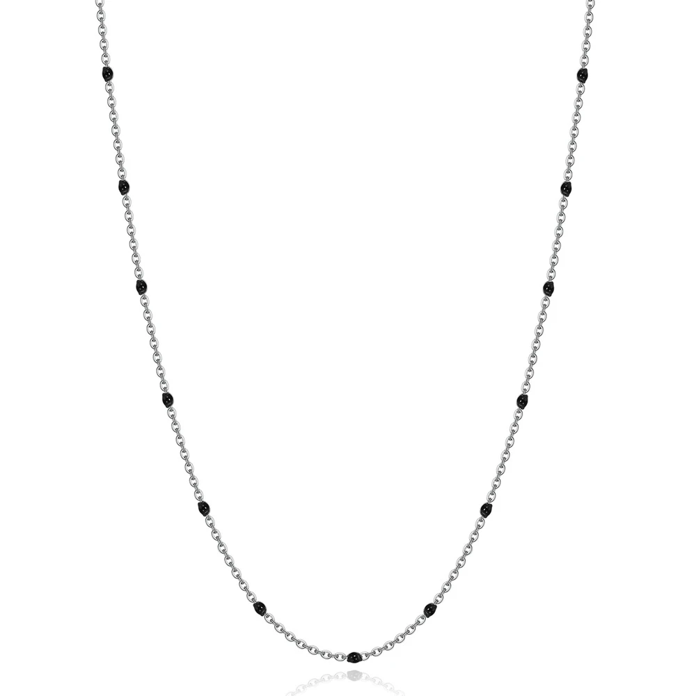 Retiazka z chirurgickej ocele pre ženy s čiernym smaltom. Povrch retiazky je leštený doplnený čierno smaltovanými očkami. Zapínanie retiazky je karabínové, dĺžka retiazky 44cm.