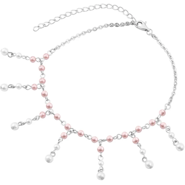 Retiazka na členok z chirurgickej ocele. Retiazka je ozdobená ružovými a bielymi korálkami. Dĺžku retiazky je možné nastaviť v rozmezí 23-29cm. Zapínanie retiazky je karabínové.