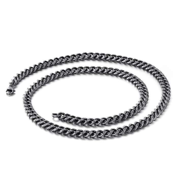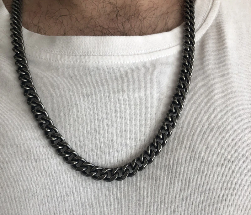 Řetízek na krk z chirurgické oceli. Povrch řetízku má barvu pistolové šedi. Délka řetízku 66cm. Řetízek má karabinové zapínání. Šířka řetízku 8mm. Na přání lze řetízek zdarma zkrátit.