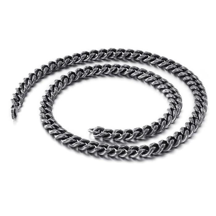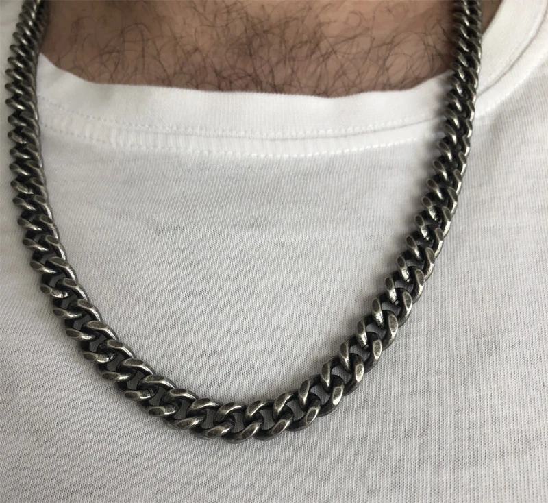 Řetízek na krk z chirurgické oceli. Povrch řetízku má barvu pistolové šedi. Délka řetízku 66cm. Řetízek má karabinové zapínání. Šířka řetízku 10mm. Na přání lze řetízek zdarma zkrátit.