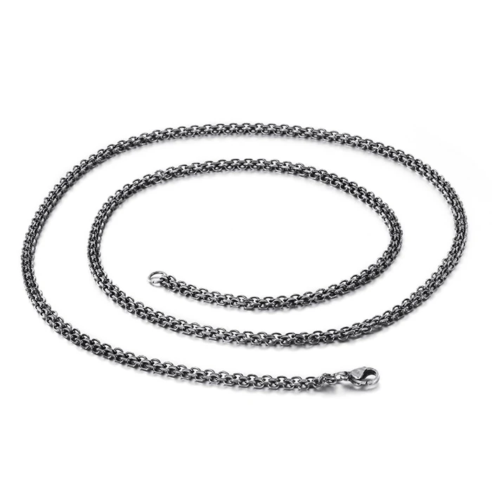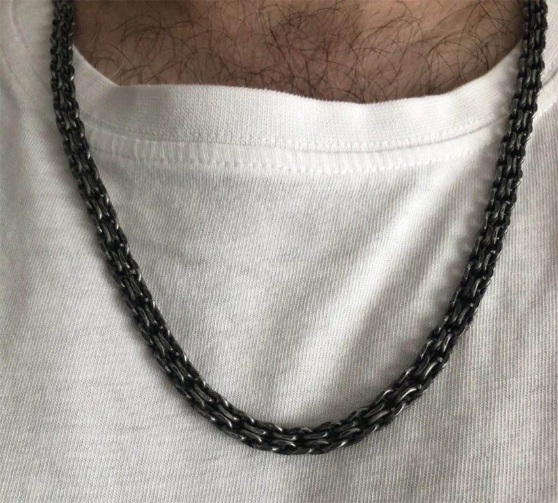 Retiazka na krk z chirurgickej ocele. Povrch retiazky má farbu pištoľové šedi. Dvojradový retiazka so zapínaním na karabínu. Dĺžka retiazky 66cm, šírka 6mm. Na želanie možno retiazku zadarmo skrátiť.